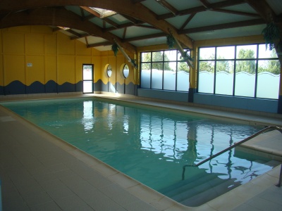 La piscine est couverte et chauffée. Une terrasse attenante avec chaises longues, tables et parasols...